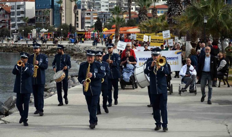 Kuşadası’nda Dünya Engelliler Günü etkinlikleri kapsamında İsmail Cem Dostluk ve Barış Meydanı’ndan başlayan ve Atatürk Meydanı’nda son bulan bir kortej gerçekleştirildi. Kuşadası Belediyesi’nin desteğiyle düzenlenen kortejin ardından engelli bireylerin yaşadıkları sorunlara dikkat çekmek ve farkındalık oluşturmak amacıyla Atatürk Anıtı’na çelenk koyuldu. Saygı duruşu ve İstiklal Marşı’nın okunmasıyla biten törene Kuşadası Kent Konseyi Başkanı Mustafa Ünver, Engelsiz Engelliler Derneği Genel Başkanı Mustafa Sıtkı Sorguç, engelli bireyleri temsil eden dernekler ve sivil toplum kuruluşları katıldı.