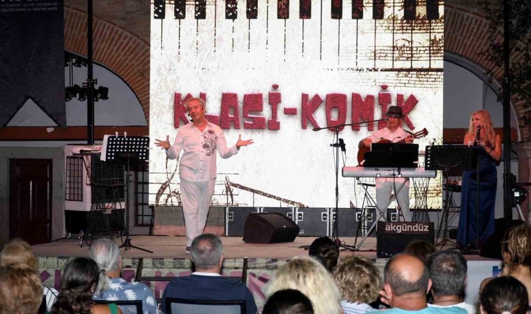 Tarihi Kervansaray’da sahnelenen müzikal gösteriye Kuşadalıların ilgisi yoğun oldu. Gösteriyi, Kuşadası Belediye Başkan Yardımcısı Oğuzhan Turan ve Kuşadası Altın Güvercin Kültür Sanat ve Tanıtım Vakfı (KUSAV) Başkanı Levent Köylü de izledi. Sahnede Metin Uca’ya, müzikleriyle Merih ve İsmet Akalın eşlik etti. Büyük beğeni toplayan müzikalde Metin Uca, filmlerde, reklamlarda ve radyolarda çalınan müziklerin kullanılış amaçları ile gerçek anlamda ne anlatmak istediklerini mizahi bir dil kullanarak izleyiciye aktardı. Tarihi Kervansaray’ı dolduran Kuşadalılar da çalınan şarkılara kimi zaman dans ederek kimi zaman da söyleyerek eşlik etti. İzleyiciyi kahkahalara boğan gecenin sonunda Kuşadası Belediye Başkan Yardımcısı Oğuzhan Turan tarafından sanatçılara teşekkür plaketi ve çiçek verildi.