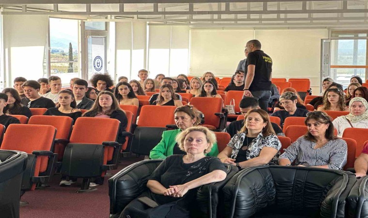 Adnan Menderes Üniversitesi Davutlar Meslek Yüksekokulu Konferans Salonu’nda gerçekleştirilen Narko Gençlik Eğitimi’nde, 250 üniversite öğrencisine uyuşturucu madde bağımlılığının zararları ve mücadele yöntemleri anlatıldı. Eğitimin ardından öğrencilere bilgilendirici broşürler dağıtıldı.