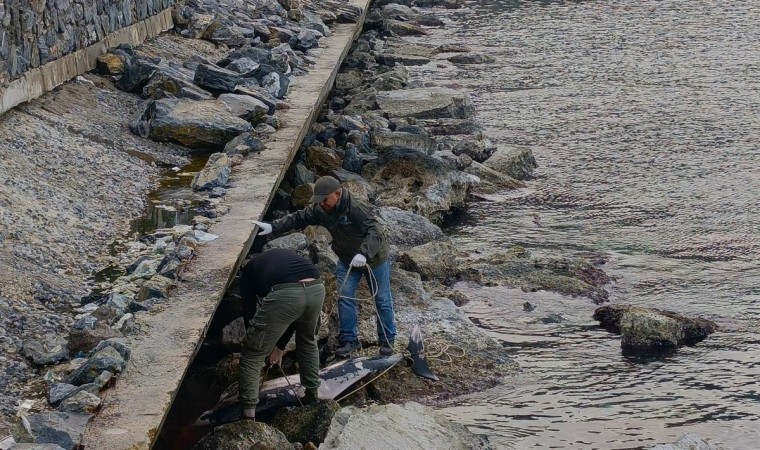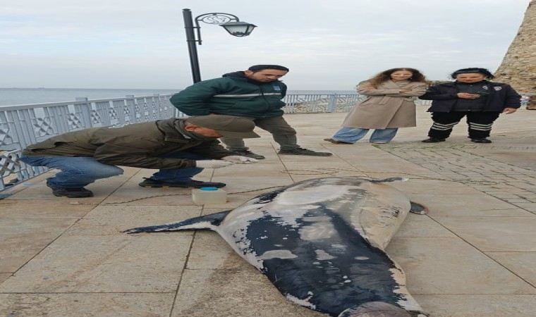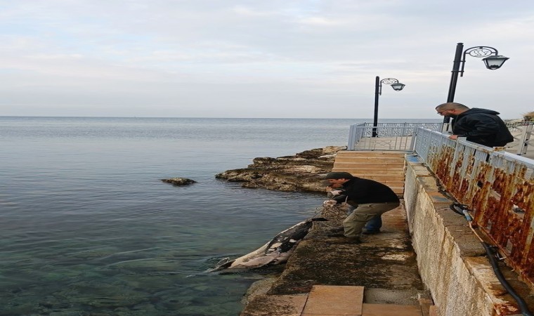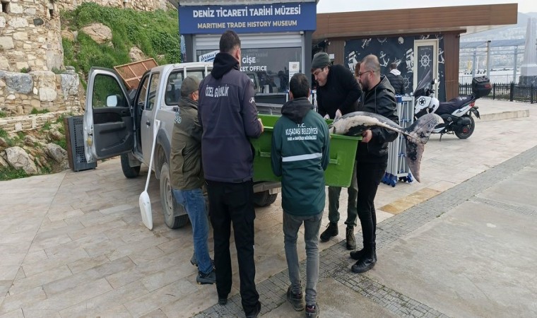 Aydın’ın Kuşadası ilçesinde Güvercinada kayalıklarına ölü olarak tırtak cinsi yunus balığı vurdu. Açıklama yapan EKODOSD Başkaı Bahattin Sürücü, yunusun trol ağlarına takılıp boğularak öldüğünü tahmin ettiklerini söyledi.