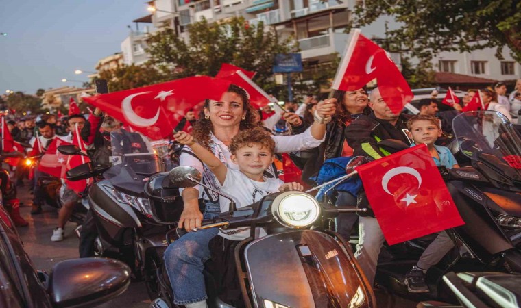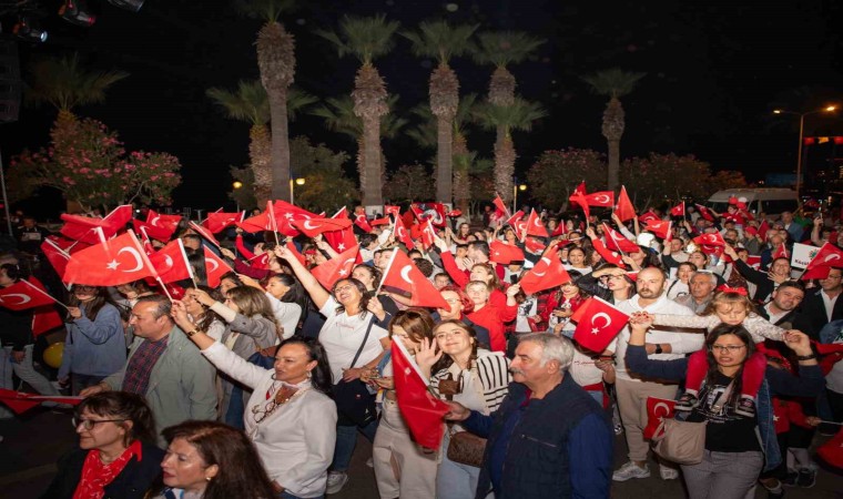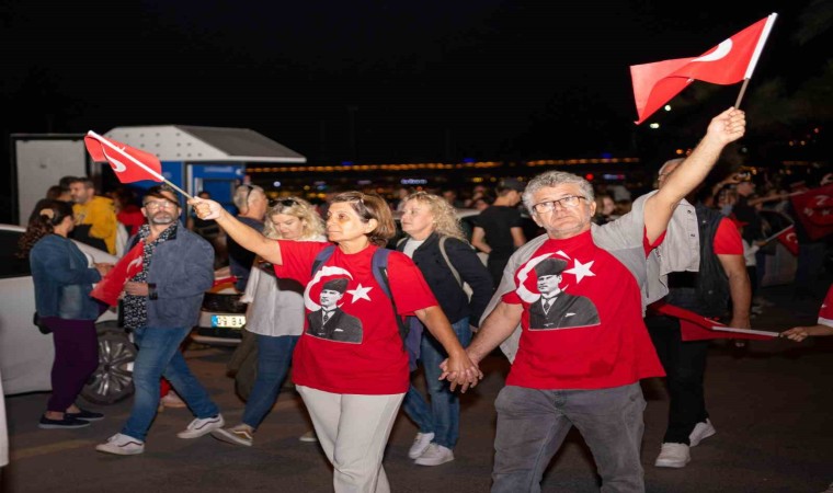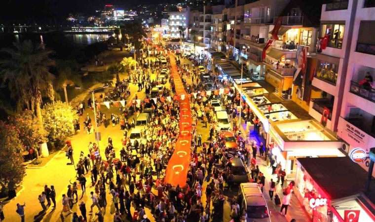 Büyük bir coşku içerisinde gerçekleşen kortejde 250 gönüllünün taşıdığı 250 metrelik dev Türk Bayrağı açıldı. 7’den 70’e tüm Kuşadalıların etrafında kenetlendiği Türk Bayrağı, kortejdeki Cumhuriyet Bayramı sevincini ikiye katladı.