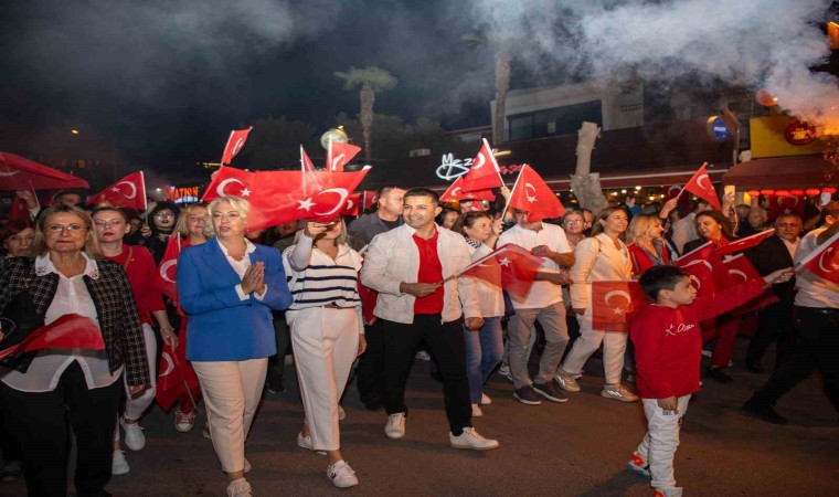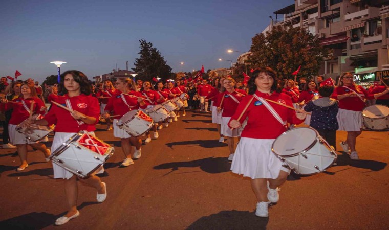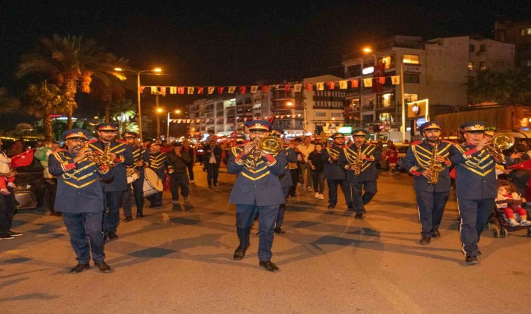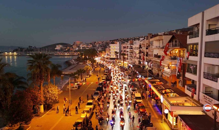 Kutlamalar, akşam saat 18:30’da Kısmet Otel Kavşağı’ndan başlayan 101’inci yıl korteji ile devam etti. Kuşadası Belediyesi tarafından düzenlenen korteje on binlerce Kuşadalı katıldı. Yürüyüşte vatandaşlar ellerinde Türk Bayrağı, Atatürk posterleri ve meşaleler taşıyarak hep bir ağızdan marşlar söyledi. Atatürk Bulvarı üzerinden Kuşadası Belediyesi Hizmet Binası’na yürüyen korteje Belediye Başkanı Ömer Günel de eşlik etti. Kuşadası Belediye Başkan Yardımcıları, Kuşadası Belediye Meclis üyeleri, siyasi partiler, dernekler ve sivil toplum kuruluşlarının da katıldığı kortejde en ön bölümde yer alan yaklaşık 600 motosikletli, Kuşadası Belediye Bandosu, Kuşadası Şehit Kaya Aldoğan Lisesi mezunlarının oluşturduğu Veteran Boru ve Trampet takımı büyük ilgi gördü. Kortejin yürüyüşünü tamamlaması 1,5 saatten fazla sürdü. Kortejin geçişi sırasında balkonlara çıkan Kuşadalılar da alkışlarla tempo tuttu.