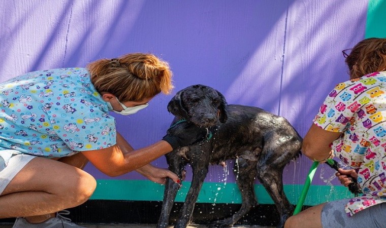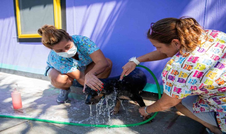 Başkan Ömer Günel’in göreve gelmesinin ardından kapasitesi ve uzman personel sayısı artırılan, tıbbi ve fiziki şartları geliştirilerek hem can dostlar hem de ziyaretçiler için keyifli bir yaşam alanı haline getirilen merkezde konuk edilen hayvanların banyo, tüy ve tırnak bakımı gibi ihtiyaçları da düzenli olarak karşılanmaya başlandı. Kuşadası’nda faaliyet gösteren Şanslı Patiler Pet Salonu’nun uzman ekibi haftada bir gün Kirazlı yolu üzerinde bulunan Evcil Hayvan Rehabilitasyon Merkezi’ni gönüllü olarak ziyaret ederek ihtiyaç duyan patili konukların tüy ve tırnaklarını kesip banyo yaptırıyor. Sıcak hava nedeniyle zorluk çeken hayvanlar, tüylerinin tıraş edilmesi ile rahat bir nefes alırken ayak ve tırnak bakımları da yapıldı.