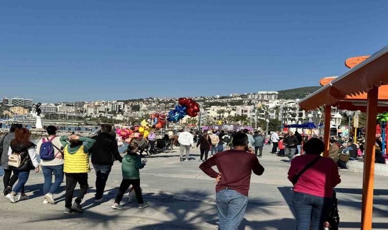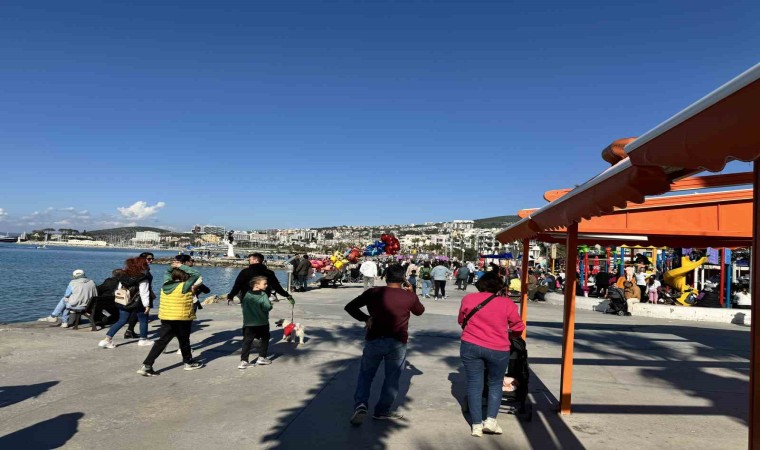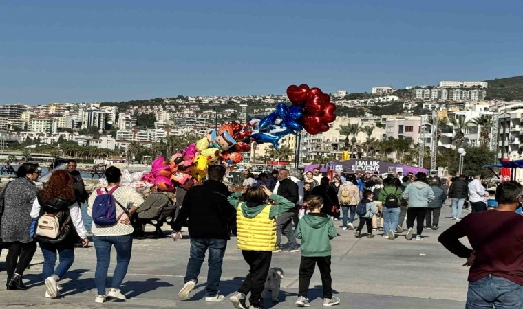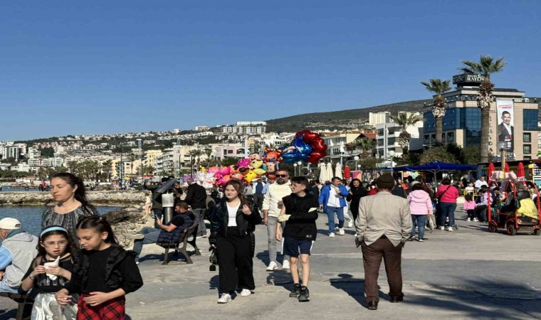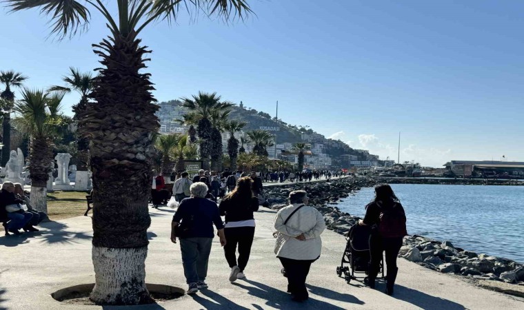 Aydın’ın Kuşadası ilçesi Şubat ayının sonlarına doğru sıcak hava dalgasıyla birlikte hareketlendi. Hava sıcaklığının 21 dereceyi bulduğu kentte, güneşin keyfini çıkarmak isteyenler sahile akın etti.