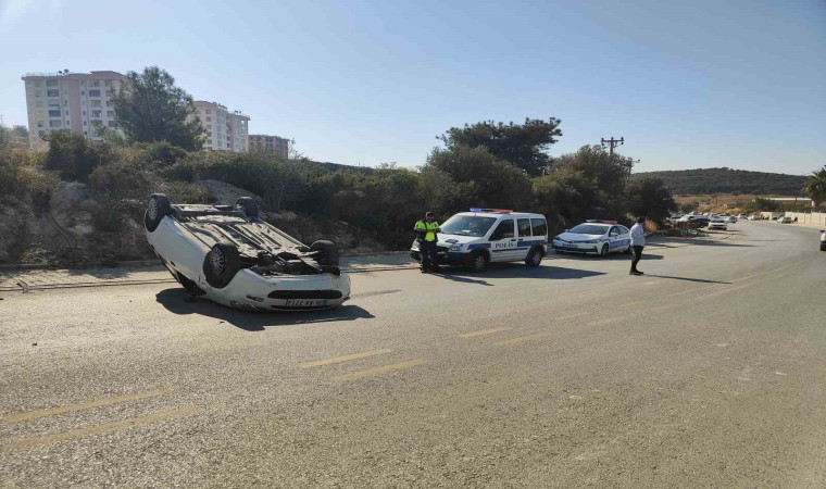 Aydın’ın Kuşadası ilçesinde seyir halindeki otomobil, sürücüsünün direksiyon hakimiyetini kaybetmesi sonucu takla attı. Kazada, ters dönen aracı kullanan Seval K. hafif şekilde yaralandı.
