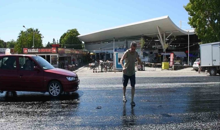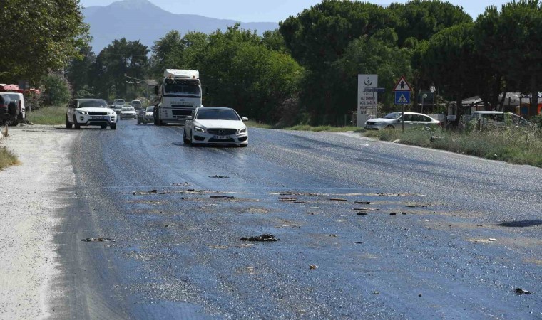 Vatandaşlar, “Karayolları ekipleri ziftin üzerine mıcır döktü ama zift eridi. Sıcaktan eriyen ziftten dolayı ayakkabı ve terliklerimiz asfalta yapıştı” diye konuştu.