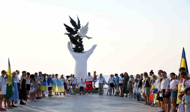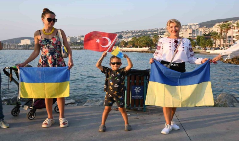 Aydın’ın Kuşadası ilçesinde yaşayan Ukraynalılar, Ukrayna’nın 32’inci Bağımsızlık Günü’nü Rusya’nın ülkelerine yönelik düzenlediği askeri harekatın sürmesi nedeniyle buruk kutladı. İsmail Cem Barış ve Dostluk Meydanı’nda toplanarak birlik zinciri oluşturan Ukraynalılar, savaşın bir an önce bitmesi dileğinde bulundu.