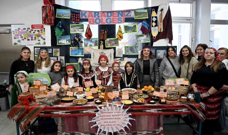 Aydın’ın Kuşadası ilçesinde, ‘Tutum, Yatırım ve Türk Malları Haftası’ kapsamında Kuşadası İlkokulu’nda düzenlenen etkinlik renkli görüntülere sahne oldu. Velilerin de katıldığı kutlama programında, yöresel kıyafetler giyen çocuklar, Türkiye’nin farklı coğrafi bölgelerine ait kültürel zenginlikleri ve lezzetleri eğlenceli bir şekilde tanıdı.