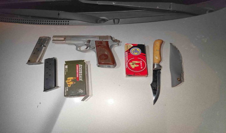 Edinilen bilgiye göre, Kuşadası İlçe Emniyet Müdürlüğü Asayiş Şube Müdürlüğü Devriye Ekipler Amirliği’ne bağlı Yunus timleri saatlerinde gece saatlerinde İkiçeşmelik Mahallesi’nde şok uygulama gerçekleştirdi. Uygulama esnasında durdurulan bir araçtan indirilen şahısların şüpheli hareketler sergilemesi üzerine ekipler tarafından otomobilde yapılan aramada, 9 mm çapında ruhsatsız tabanca, 69 mermi ile 24 santimetre uzunluğunda av bıçağı ele geçirildi. Yine aynı uygulama sırasında durdurulan bir motosikletin bagaj kısmında da 2 parça halinde toplam 15 gram esrar bulundu. Otomobil sürücüsü B.A ile motosiklet sürücüsü S.A gözaltına alınarak emniyete götürüldü.