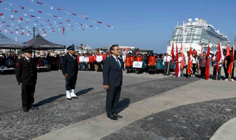 Kutlama programı, sabah saat 09.30’da Kaymakamlık makamında düzenlenen tebriklerin kabul töreniyle başladı. Kutlamalar daha sonra Atatürk Meydanı’nda gerçekleştirilen resmi törenle devam etti. Törene; Kuşadası Kaymakamı Sadettin Yücel, Kuşadası Belediye Başkanı Ömer Günel, belediye başkan yardımcıları, ilçede görev yapan mülki ve idari amirler, siyasi parti ile sivil toplum kuruluşlarının temsilcileri ve vatandaşlar katıldı.