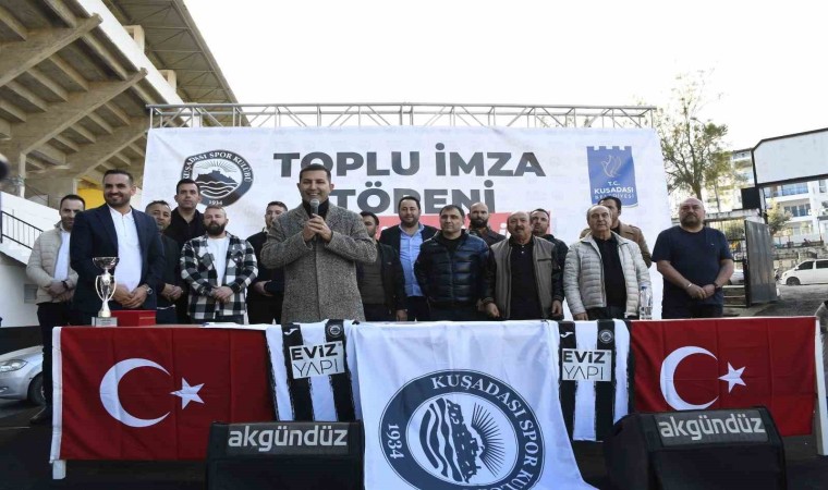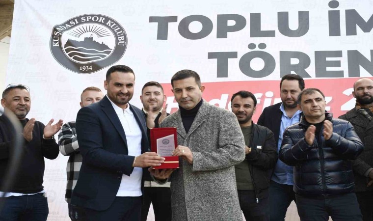 Kuşadası Belediye Başkanı Ömer Günel ile kulüp yöneticilerinin katıldığı toplu imza töreninden önce, kulübe bugüne kadar katkı yapan eski yöneticilere teşekkür plaketi takdim edildi. Ayrıca şampiyon olan U-14 takımına da kupa ve madalyaları Başkan Ömer Günel ile Kuşadasıspor Başkanı Ferdi Zenginoğlu tarafından verildi. Şenlik havasında geçen toplu imza töreni, Kuşadası Belediyesi’nin düzenlediği mangal partisiyle sona erdi.
