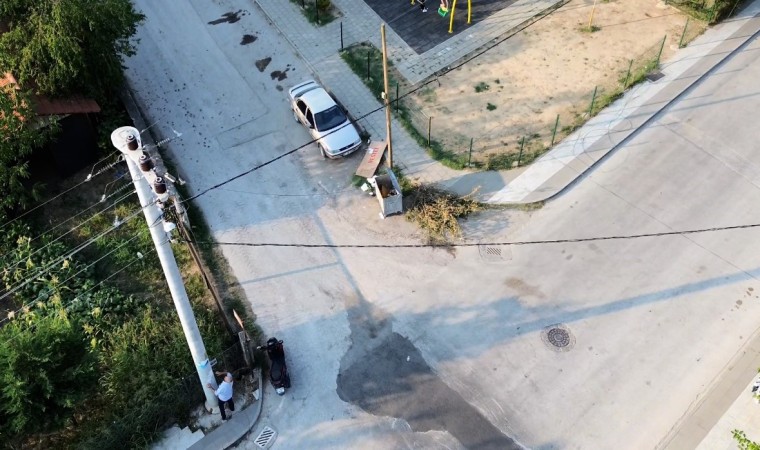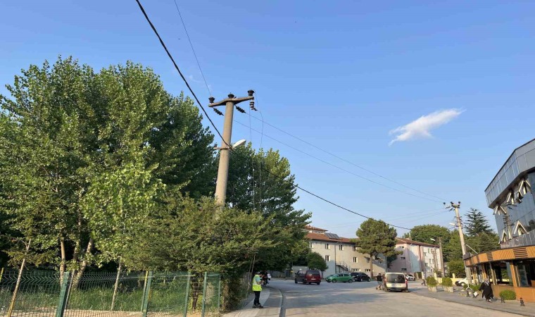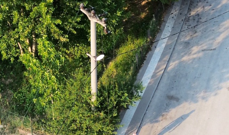 Düzce’de kuşun çarptığı elektrik kablosu koparak yere düştü. 10 bin nüfuslu mahallede elektrikler kesildi.