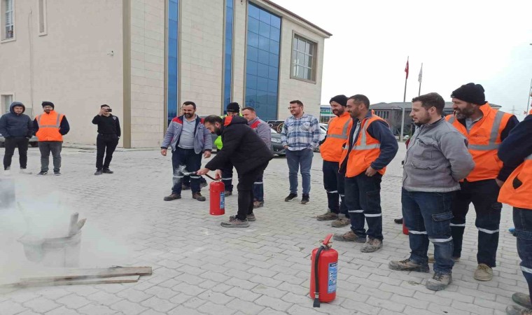 Kütahya Belediyesi itfaiye ekibi tarafından Kütahya 30 Ağustos Organize Sanayi Bölgesi (OSB) Müdürlüğü personeline temel yangın eğitimi verildi.