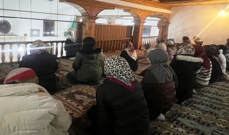 Kütahya Akşemsettin Kız Anadolu İmam Hatip Lisesi öğrencileri, aileleriyle birlikte sabah namazını için Saadettin Camii’nde bir araya geldi.