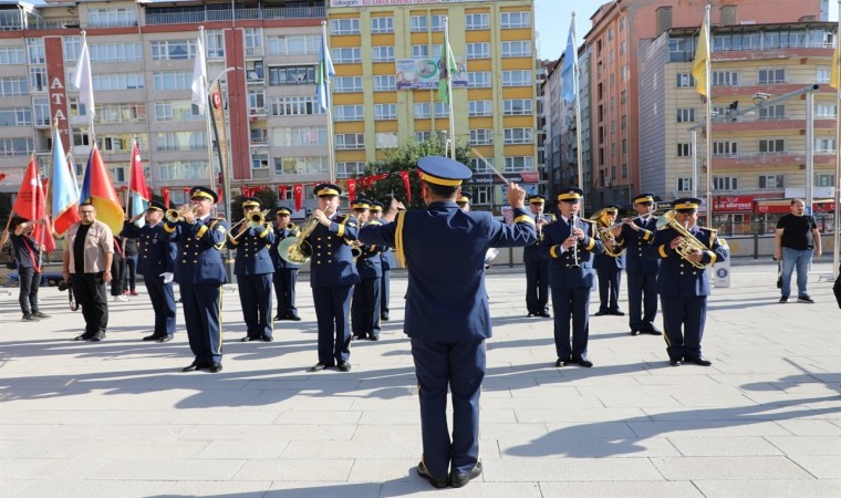 Vali Musa Işın, Hava Er Eğitim Tugay ve Garnizon Komutanı Tuğgeneral Mustafa Baş, Belediye Başkanı Prof. Dr. Alim Işık’ın Atatürk Anıtı’na çelenk sunmasının ardından saygı duruşunda bulunuldu ve İstiklal Marşı okundu.