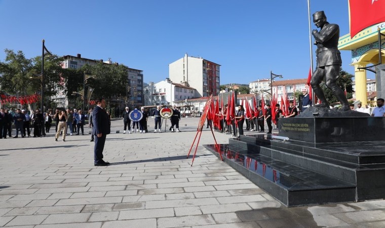 Vali Musa Işın, Hava Er Eğitim Tugay ve Garnizon Komutanı Tuğgeneral Mustafa Baş ve Belediye Başkanı Alim Işık’ın Atatürk Anıtı’na çelenk sunmasının ardından saygı duruşunda bulunuldu ve İstiklal Marşı okundu.