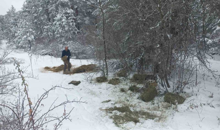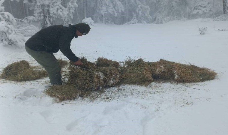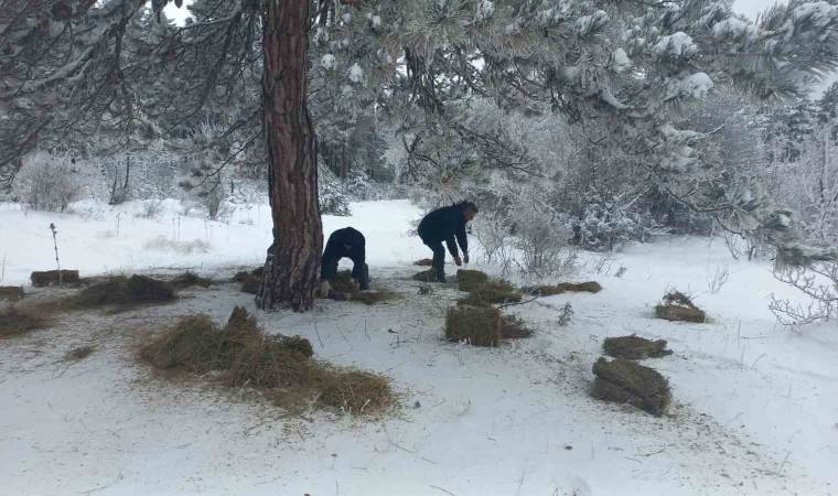 Kütahya Doğa Koruma ve Milli Parklar Şube Müdürlüğünce (DKMP) yaban hayvanlarına yönelik yemleme çalışması çerçevesinde kızıl geyikler için dağlara 900 kilogram yonca balyası bırakıldığı bildirildi.