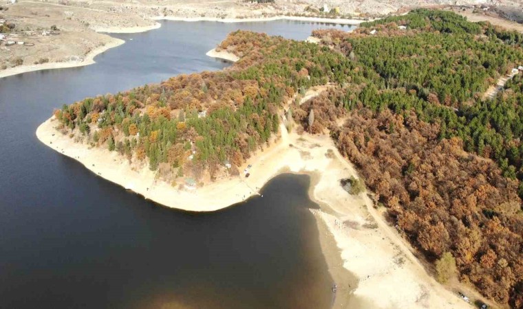 Kütahya’da Enne Barajı ve Tabiat Parkı, sonbaharın son günlerinde ziyaretçilerine eşsiz manzaralar sunuyor.