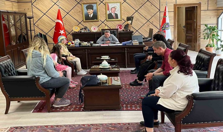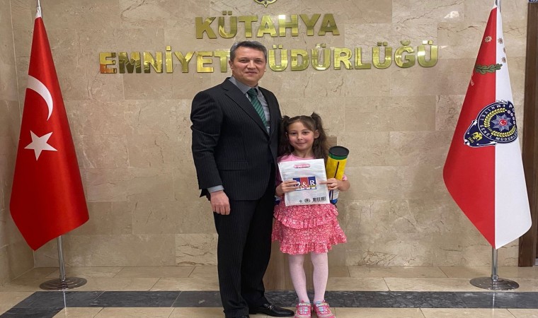 Kütahya İl Emniyet Müdürü Hakan Sıralı, yazmayı öğrendikten sonra kendisine yeni yıl kutlama kartı gönderen Şehit Semih Akyıldız İlkokul 1/C sınıfı öğrencisi İkra Yabaş’ı makamında misafir etti.