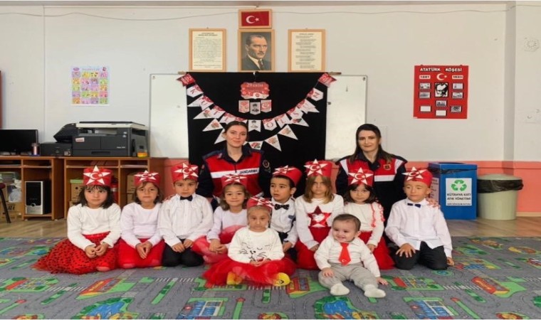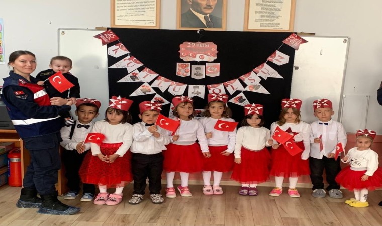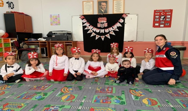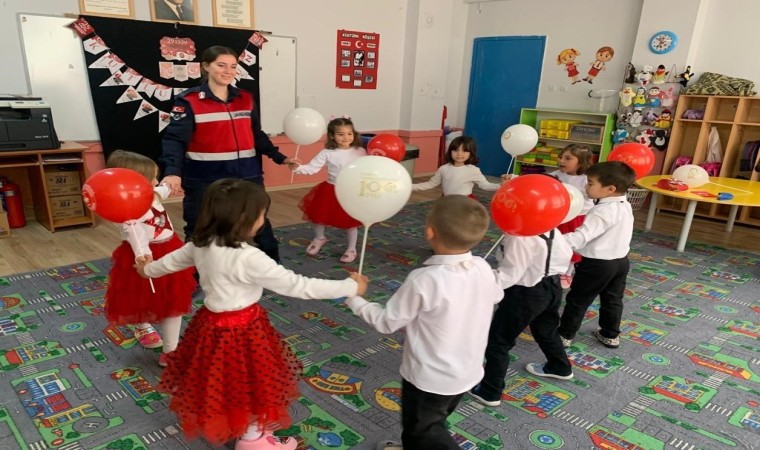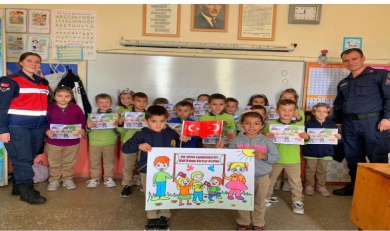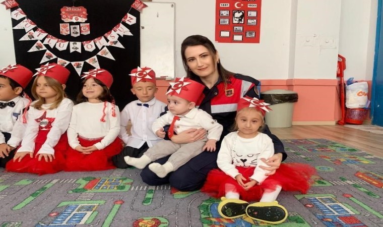 Kütahya İl Jandarma Komutanlığı Aile İçi Şiddetle Mücadele ve Çocuk Kısım Amirliği, Cumhuriyetin 100. Yılı etkinleri çerçevesinde ilkokul öğrencilerine “Tim Jandarma” çizgi filmini izletip dergi ve broşür dağıttı.