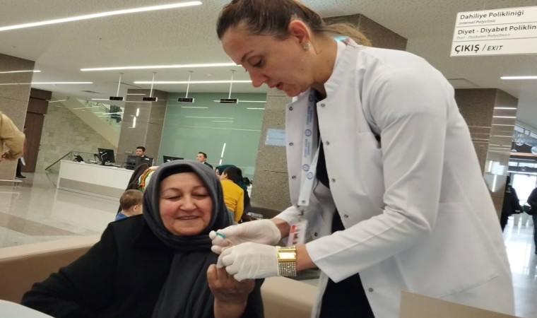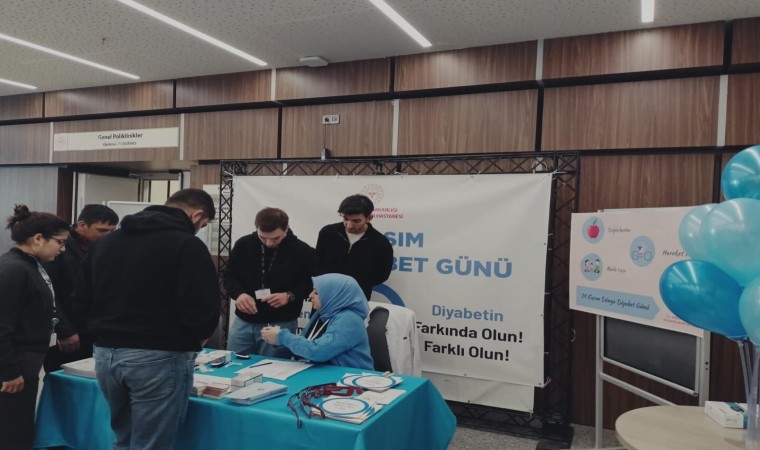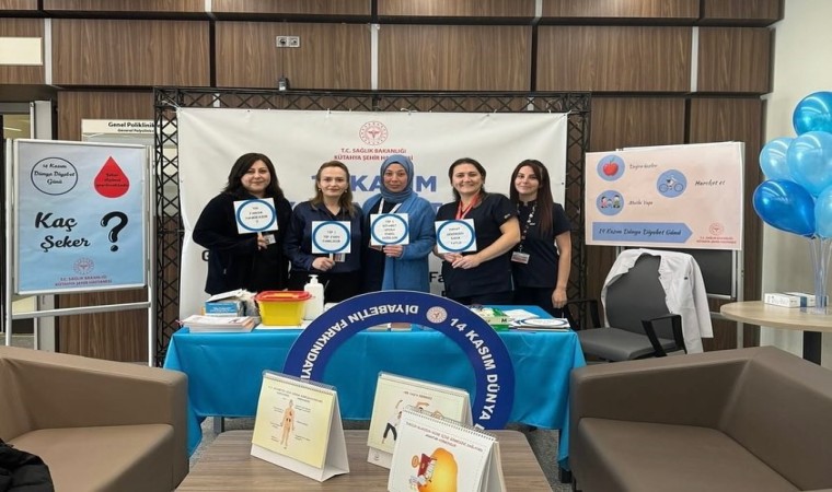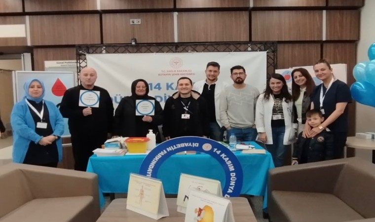 Kütahya Şehir Hastanesinde Dünya Diyabet Günü nedeniyle kurulan diyabet tarama standında kan şekeri ölçümü yapıldı.
