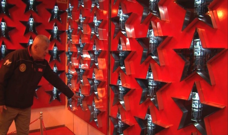 "Derneğimizin ikinci (orta katında) özellikle günümüz şehitleri diye adlandırdığımız, 1980 sonrasında ekseriyeti terörle mücadelede hayatını kaybeden şehitlerimiz için bir anı köşesi ve müze oluşturduk. Daha önce de söylediğimiz gibi şehitlerimizin resimleri ve bilgilerinin olduğu kristallerimizi daha önce sergiliyorduk. Fakat bu geniş bir alana geçtikten sonra özellikle bir şehidimizin benim rüyama girmesi vesilesi ile onun lahdindeki yazan yazı ile gökyüzündeki kayan yıldız için kendini şehit olarak tabir eden şehidimizin o yazısı ile dedik ki, şehitlerimiz, gazilerimiz yıldız olmayı hak ediyor. Bu Tabii ki derneğimizin, bizlerin şahsi gayretleri ile kendi düşüncemiz ve kendi iç dinamiklerimizle oluşturduğumuz bizler için çok kıymetli bir alan. Bu alan içerisinde 201 tane şehidimizi sergiliyoruz. Bu 201 şehidimizin içerisinde iki tane Kore, 7 tane Kıbrıs şehidinin haricinde ekseriyeti terörle mücadele kapsamında hayatını veren yiğitlerimiz. 201 tane şehidimizi aşağı alanda sergiliyoruz. Bu alan içerisinde de Birinci Dünya Savaşı şehidi olarak tespit ettiğimiz 2 bin 376 tane şehidimizi de burada sergiliyoruz. Biz her zaman için diyoruz. Biz dernek üyesinin çoğalmasını istemeyen tek derneğiz. Rabbim bu memlekete çok şehit, çok gazi verdirtmesin ama biz bunları söylerken Bu Vatan, bu bayrak, bu din için şehit olmamız gerekiyorsa şehit oluruz gazi olmamız gerekiyorsa gazi oluruz. İşte bunun en büyük örneği bu alanlarda sergilediğimiz şehitler. Bize düşman olanın gözünü oyarız."