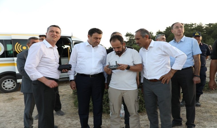 Kütahya Gedikoğlu Çiftliği mevkiinde çıkan orman yangını bölgesinde incelemelerde bulunan Vali Musa Işın, yangın söndürme çalışmalarının koordinasyonunu sağladı.