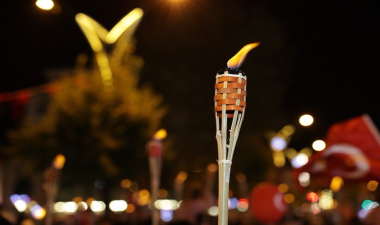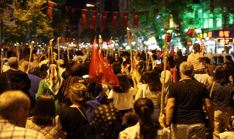 Ellerinde meşaleler ve Türk Bayraklarıyla yürüyen vatandaşlarımız, söyledikleri marşlarla zaferin coşkusuna ve heyecanını ortak oldu.