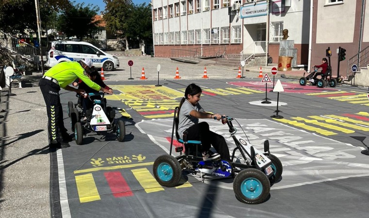 Trafik Tescil ve Denetleme Şube Müdürlüğünce Mehmet Çini İlkokulu bahçesinde oluşturulan Seyyar Çocuk Trafik Eğitim Parkında toplam 275 öğrenciye güvenli trafik kullanımı konusunda hem teorik, hem de uygulamalı olarak temel trafik eğitimi verildi.