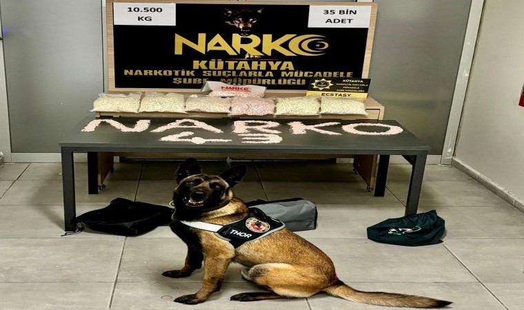 Narkotik Suçlarla Mücadele Şube Müdürlüğü ekiplerince yapılan çalışmalar sonucu, uygulama noktasında durdurulan bir araçta uyuşturucu arama köpeği "Thor" ile yapılan aramada, otomobilin arka koltuğunda 3 çanta dolusu toplam ağırlığı 10 kilo 500 gram olan 35 bin adet uyuşturucu hap ele geçirildi. Uyuşturucu kuryesi olduğu değerlendirilen otomobil sürücüsü H.Ö. (33), ekiplerce gözaltına alındı.