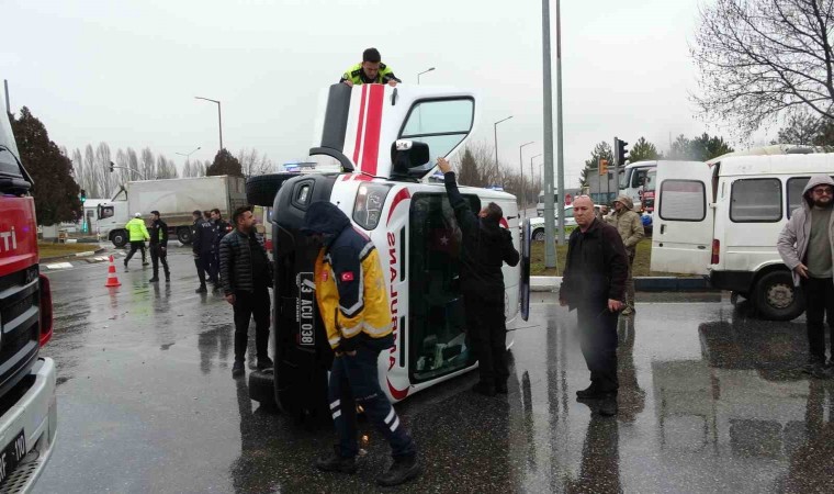 Edinilen bilgiye göre, Çavdarhisar ilçesinden Kütahya Şehir Hastanesine hasta getiren 43 ACU 038 plakalı ambulans Kütahya-Tavşanlı karayolu Sanayi Kavşağı’nda 16 E 4287 plakalı otomobil ile çarpıştı.