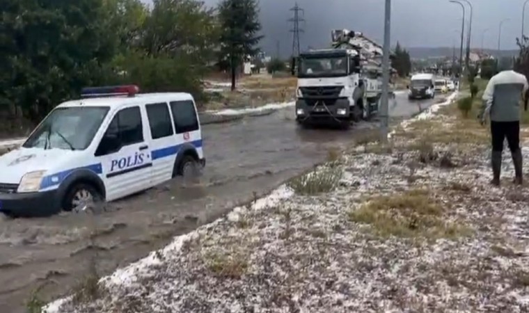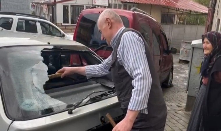 Kuruyemişçileri, manaları ve tekstilcileri büyük zarar veren dolu vurgunu, bir vatandaşında otomobilinin camını kırdı.
