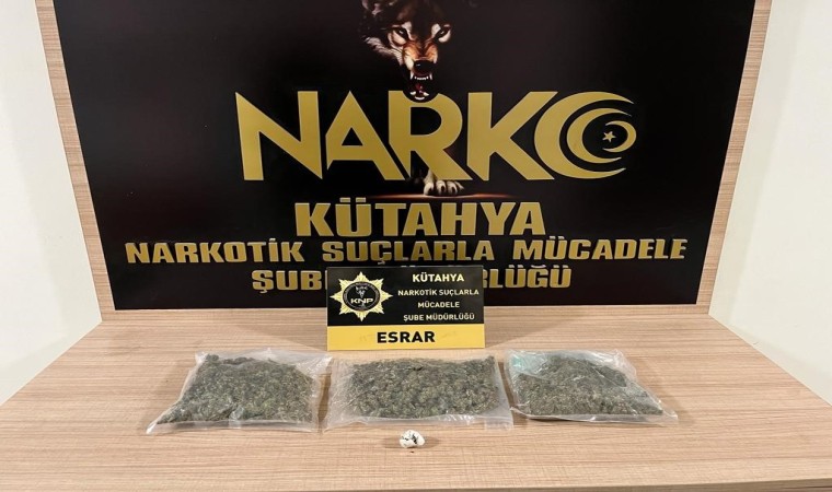 Kütahya’da polisin yaptığı uyuşturucu operasyonunda bir otomobile gizlenen 347,20 gram esrarı, narkotik köpeği ’Thor’ buldu.