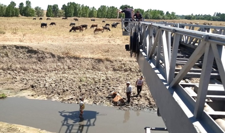 Olay yerine gelen ekipler, ineği bağladıkları halatlarla bataklıktan çıkarttı. İnek bataklıktan çıkarıldıktan sonra kovalarla getirilen su ile temizlendikten sonra sahibine teslim edildi.