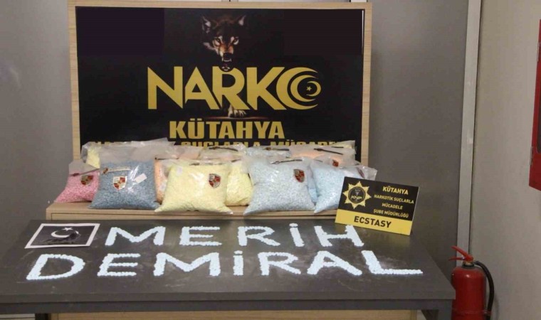 İl Emniyet Müdürlüğü Narkotik Suçlarla Mücadele Şube Müdürlüğü ekiplerince yapılan çalışmalar sonucu, Uygulama Noktasında durdurulan bir araçta yapılan aramada, 160 bin adet 64 kilo 890 gram Ecstasy maddesi ele geçirildi. Araç içerisindeki U.Ö.(23) isimli şahıs gözaltına alındı. Devam eden çalışmalarda şüpheli şahısla bağlantılı olduğu tespit edilen B.D. (27 ) ve O.D. (34 ) isimli şahıslar içinde bulundukları araç ile birlikte Antalya Narkotik Suçlarla Mücadele Şube Müdürlüğü ekipleri tarafından yakalandı. Şüpheliler Kütahya’da Narkotik Suçlarla Mücadele Şube Müdürlüğü ekiplerine teslim edilmek üzere gözaltına alındı. Bu arada emniyet güçlerince 64 kilo 890 gram ecstasy maddesinin sergilendiği standa, UEFA tarafından Bozkurt işareti yaptığı gerekçesiyle 2 maç ceza verilen milli futbolcu Merih Demiral’in isminin yazılması dikkat çekti.