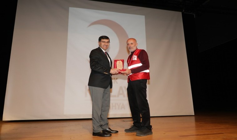Kütahya’da Kızılay’a destek veren gönüllü ve bağışçılara teşekkür plaketi takdim edildi.