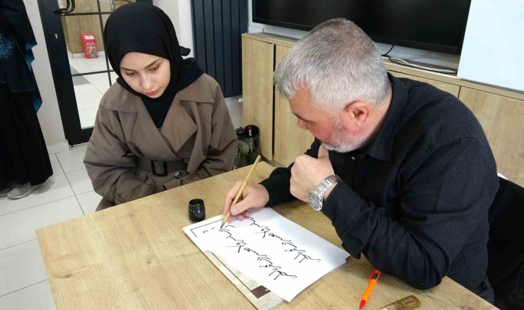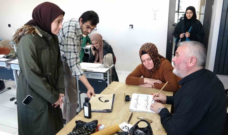 Kursiyerler de Hattat Ahmet Türk’e teşekkür ederek, kursu başarıyla tamamlamayı hedeflediklerini söylediler.