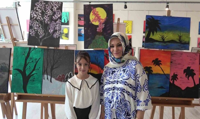 Halk Eğitim Merkezi tarafından açılan resim kursunun geçen hafta sonlandırıldığını dile getiren görsel sanatlar öğretmeni Tuğba Uslu, “Burada önceliğimiz, yaş grubu küçük olduğu için akrilik boya kullanımını, tuvalin ne olduğunu, fırça kullanımını öğretmek istedik” dedi.