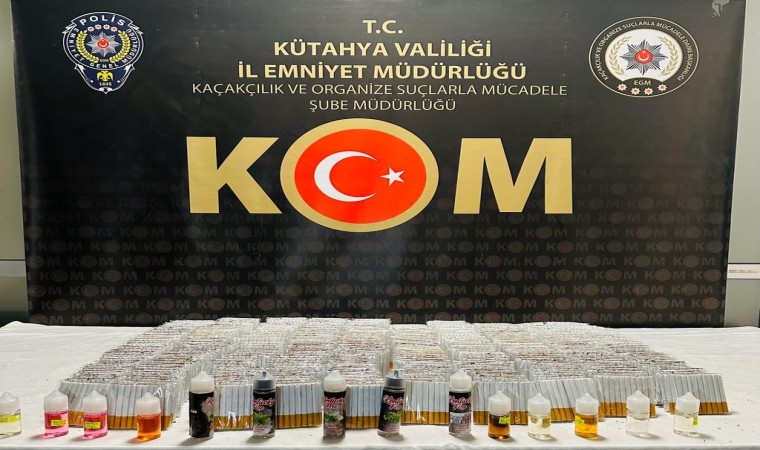 Kütahya Kaçakçılık ve Organize Suçlarla Mücadele Şube Müdürlüğü görevlilerince Kütahya merkezinde Kaçakçılıkla Mücadele Kanuna Muhalefet suçunun önlenmesine yönelik olarak 4 adet işyeri ve 2 adet ikamet adresinde yapılan aramalarda, 10 bin 420 adet içi kıyılmış tütün ile doldurulmuş makaron, 6 bin 600 adet bandrolsüz boş makaron, 2 adet sigara sarma makinası ve 14 adet elektronik sigara likiti ele geçirildi.