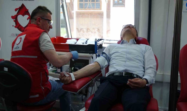 Kütahya Belediye Başkanı Eyüp Kahveci, kan verme etkinliğinde Kütahyalılarla buluştu.