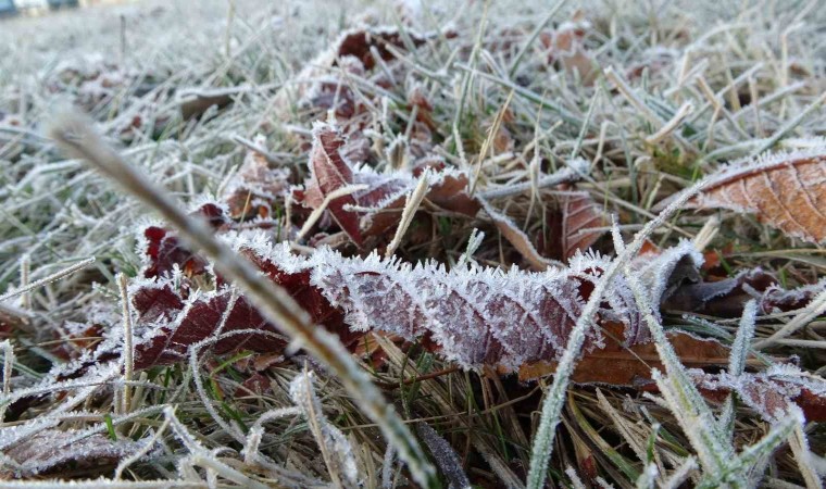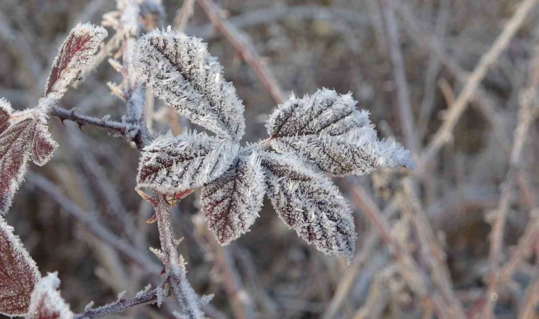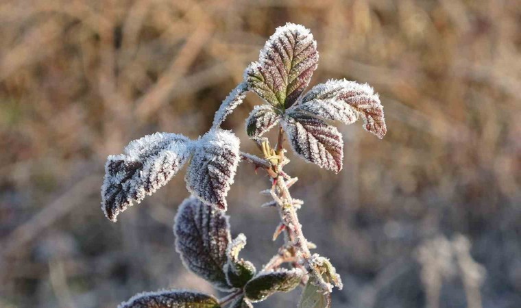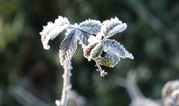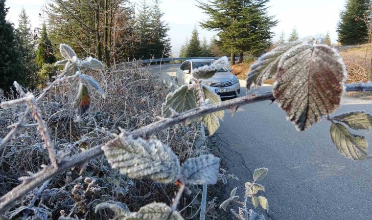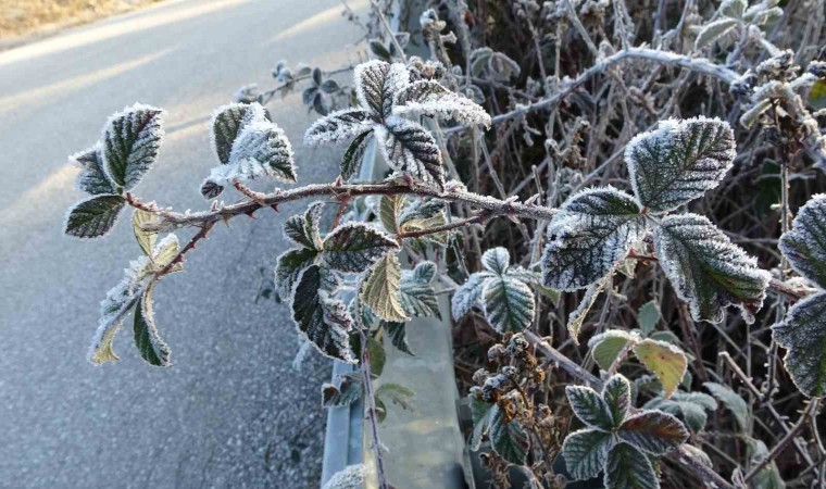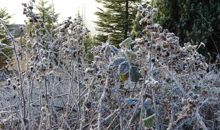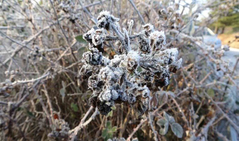 Kütahya’da gece etkili olan soğuk hava nedeniyle üzerleri kırağı tutan bitki ve ağaçlar güzel bir görüntü oluşturdu.