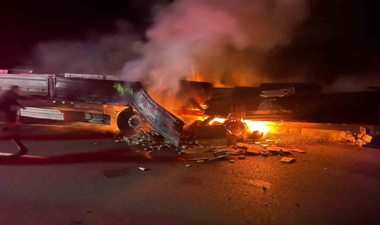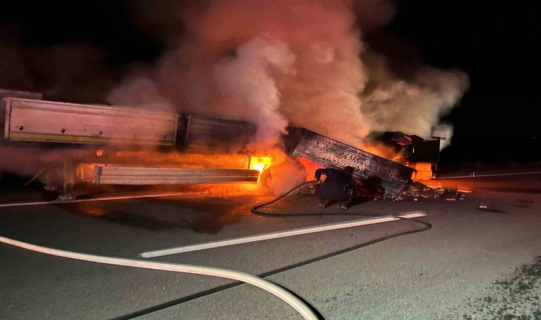 Yangın itfaiye ekiplerinin yaklaşık yarım saat süren çalışmasıyla yangın söndürülürken, tırın dorsesi kullanılamaz hale geldi.