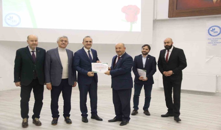 Ödül törenine geçilmeden önce Milli Eğitim Müdürü Hasan Başyiğit jüri üyelerine hediyelerini ve belgelerini takdim etti. Ardından danışman öğretmenler de Jüri Üyesi Doç. Dr. Ömer Faruk Söylev’in elinden katılım belgelerini ve hediyelerini aldılar.