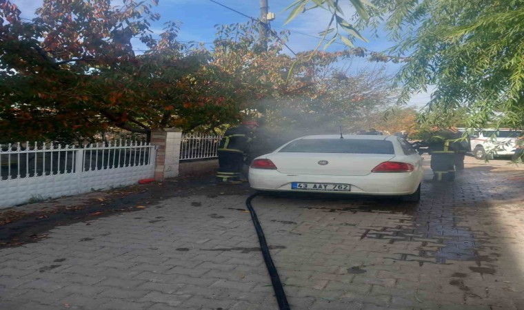Kütahya’da park halindeyken yangın çıkan otomobilde maddi hasar oluştu.