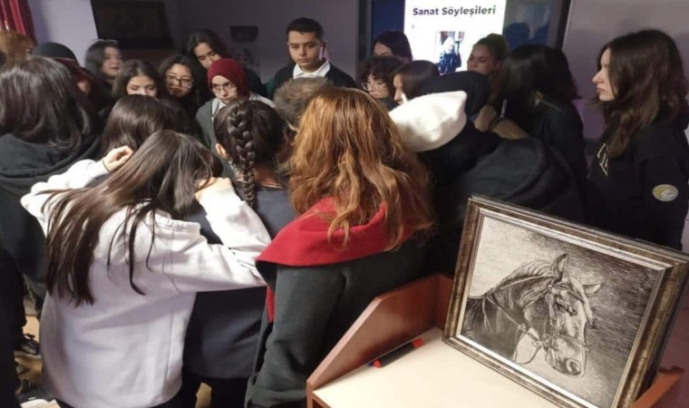 Tunca’nın söyleşisi sonrası öğrencilerle birlikte küçük bir çalışma yaparak sigrafitto sanatının yapılışını tanıttı.
