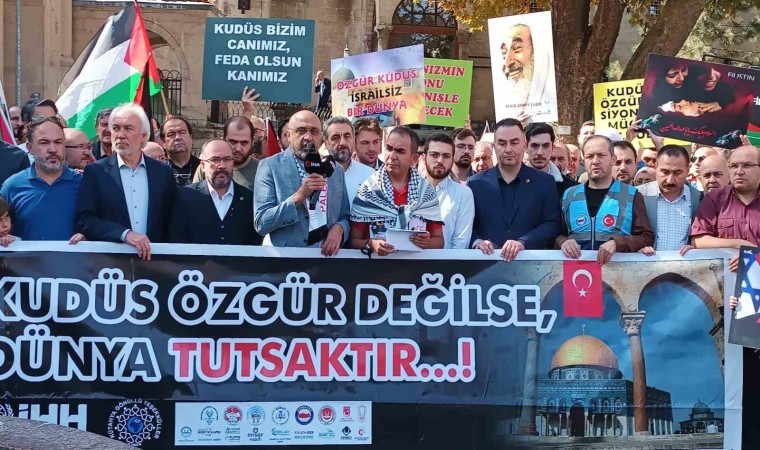 Ulu Cami’de öğle namazının ardından bir araya gelen STK temsilcileri, yaptıkları basın açıklamasında Filistin’e destek çağrısında bulundu.