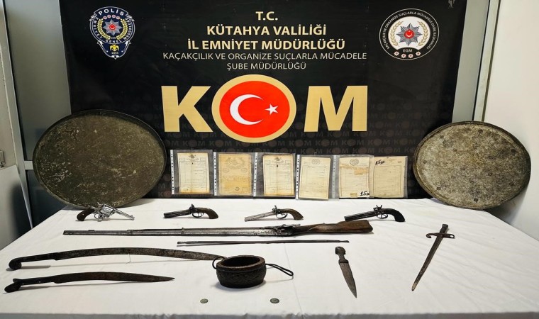 İl Emniyet Müdürlüğü KOM Şube Müdürlüğünce yapılan saha çalışmalarında durumundan şüphelenilerek durdurulan araçta ve H.A. (62) isimli şahsın üst aramasında, tarihi eser niteliği taşıdığı değerlendirilen 3 adet dolma tabanca,1 adet altı patlar tabanca, 1 adet Osmanlı dönemine ait olduğu değerlendirilen tüfek, tarihi eser niteliği taşıdığı değerlendirilen 3 adet kılıç,1 adet kama, 2 adet sini, 2 adet sikke, 1 adet mermer, 6 adet Osmanlıca ibareler yazılı olan kağıt evrak ve 1 adet eski dönemlere ait olduğu değerlendirilen ölçüm aleti parçası olmak üzere toplam 21 parça ele geçirildi