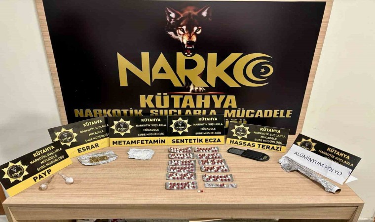 Kütahya İl Emniyet Müdürlüğü İstihbarat ve Narkotik Suçlarla Mücadele Şube Müdürlüğünce Y.Y. (33) isimli şahsa yönelik başlatılan çalışmalarda 3 ayrı ara yakalama yapıldı. Yapılan yakalamalardan, 1,57 gram metamfetamin, şahsa ait ikamet ve işyerinde yapılan aramalarda ise, 3,43 gram metamfetamin, 2,82 gram esrar, 157 adet sentetik ecza, 2 adet payp ve 1 adet hassas terazi ele geçirildi.