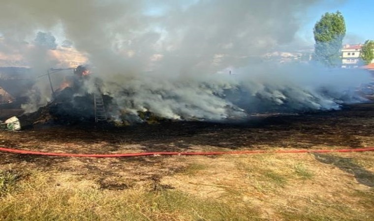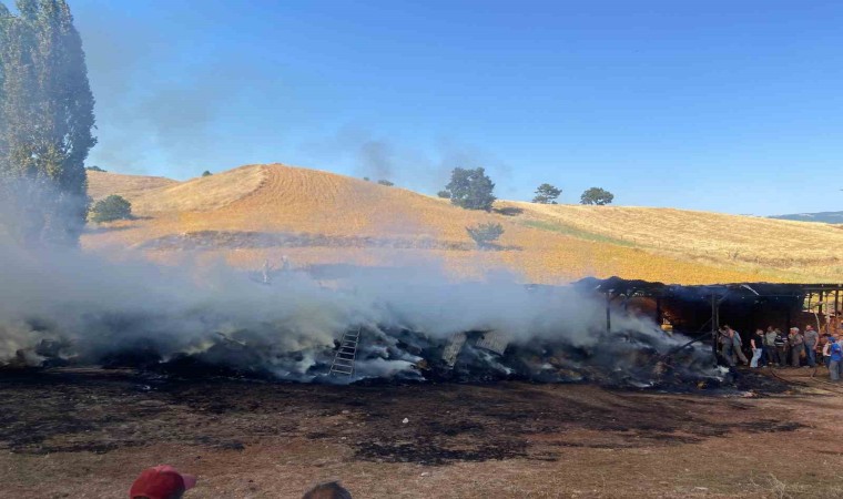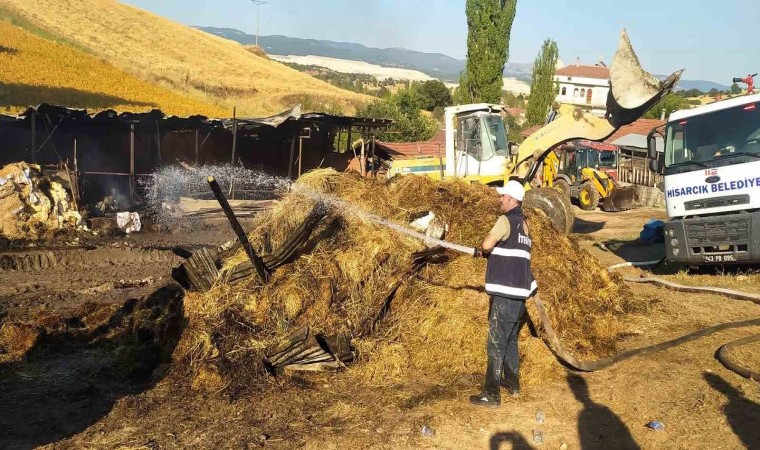 Kütahya’nın Hisarcık ilçesinde açık besi arazisinde çıkan yangında 3 büyükbaş hayvan telef oldu, bin 200 balya saman yandı.