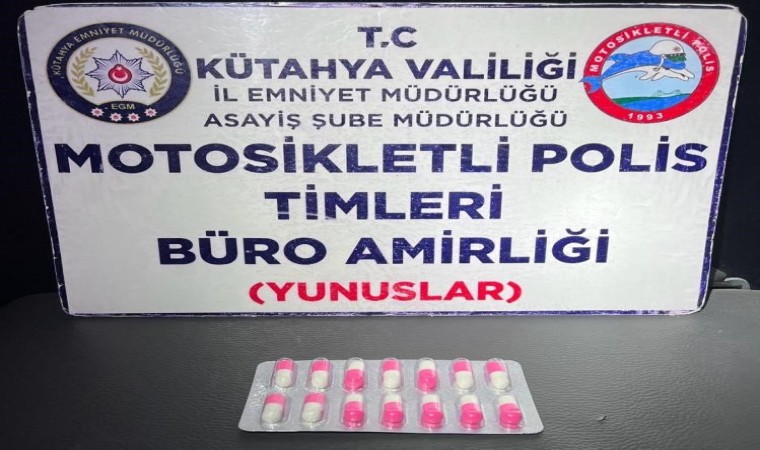Kütahya’da Motosikletli Polis Timlerince bir kişinin aracında bir kişinin aracında ve şahsın yapılan üst aramasında uyuşturucu hap ele geçirildi.